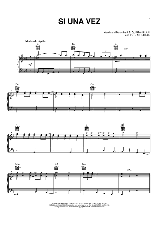 "Si Una Vez" Sheet Music by A.B. Quintanilla III