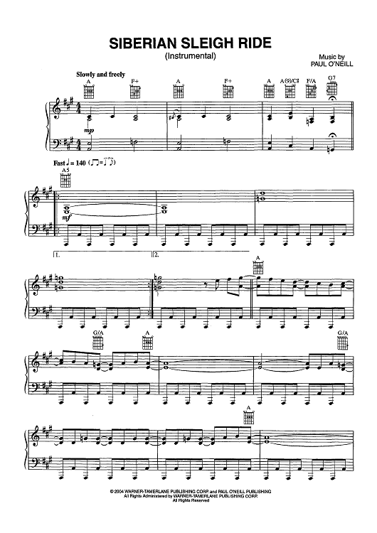 Digital Sheet Music for Siberian Sleighride by Trans-Siberian Orchestra, Paul O'Neill scored for Piano/Chords; id:465654