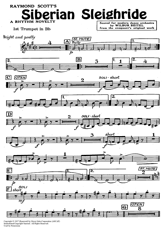"Siberian Sleighride - Trumpet 1" Sheet Music by Raymond Scott