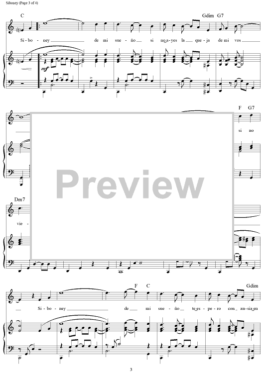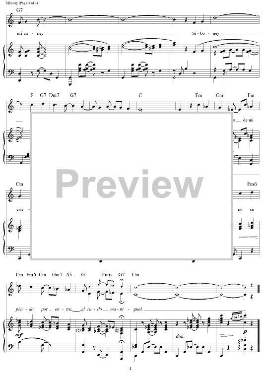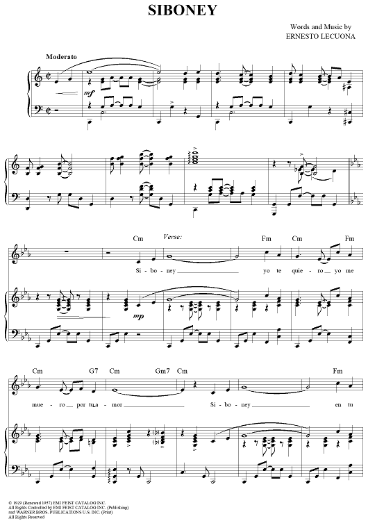 Digital Sheet Music for Siboney by Ernesto Lecuona scored for Piano/Vocal/Chords; id:250766