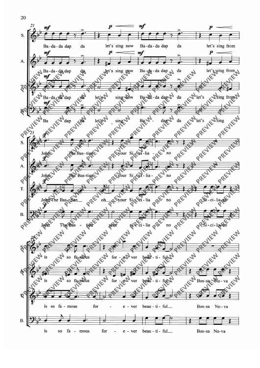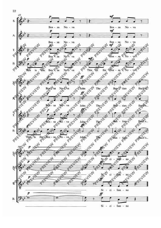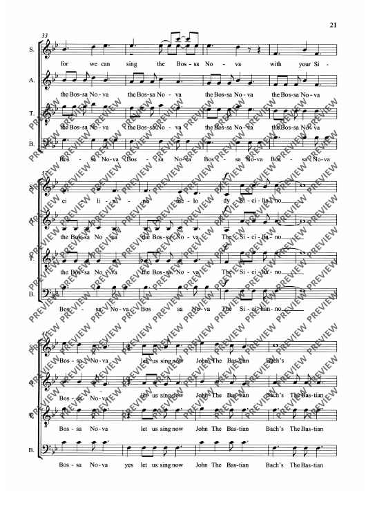 Digital Sheet Music for Siciliano Bossa Nova by Johann Sebastian Bach, Manfred Sievritts scored for Mixed Choir (satb) A Cappella; id:499195