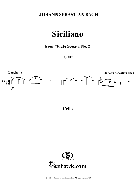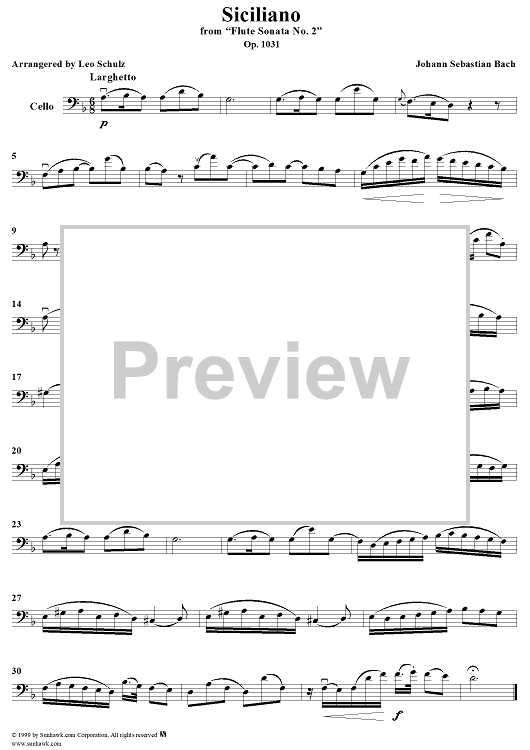 Digital Sheet Music for Siciliano from "Flute Sonata No. 2" - Cello by Leo Schulz, Johann Sebastian Bach scored for Cello/Piano; id:273686