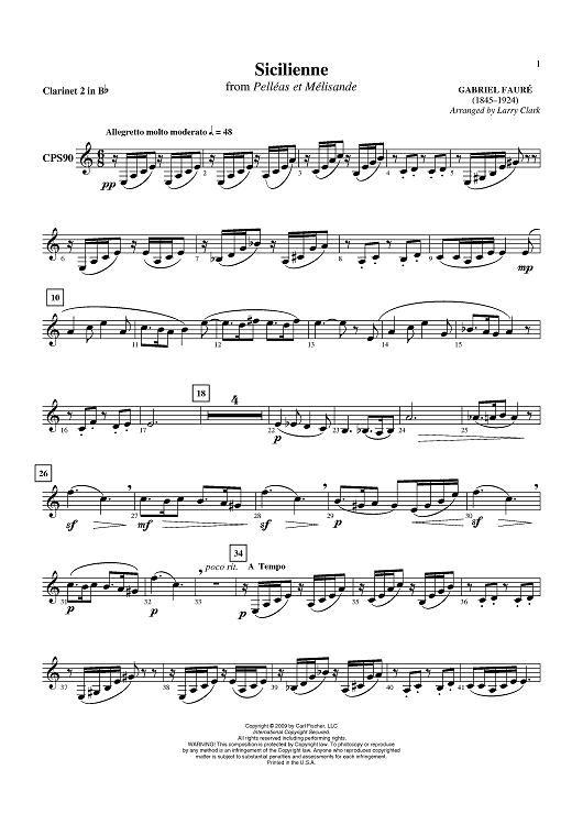 Digital Sheet Music for Sicilienne - Clarinet 2 in B-flat by Gabriel Fauré, Larry Clark scored for Concert Band; id:405671