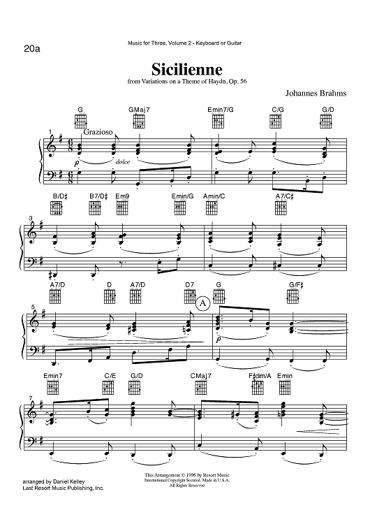 Digital Sheet Music for Sicilienne - from Variations on a Theme of Haydn, Op. 56 - Keyboard or Guitar by , Johannes Brahms, Daniel Kelley scored for Instrumental Trio; id:422653