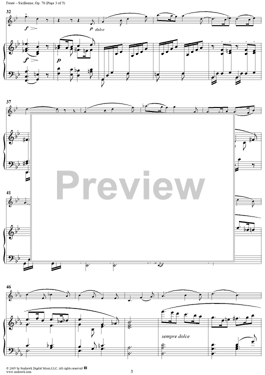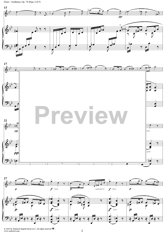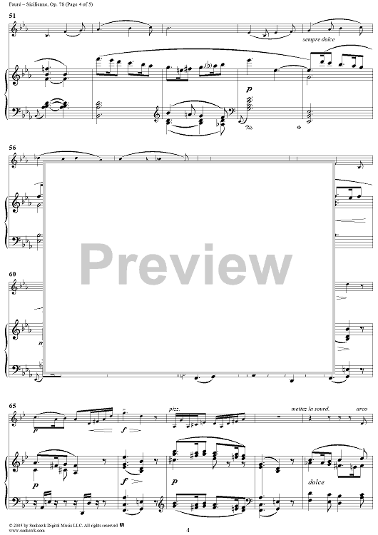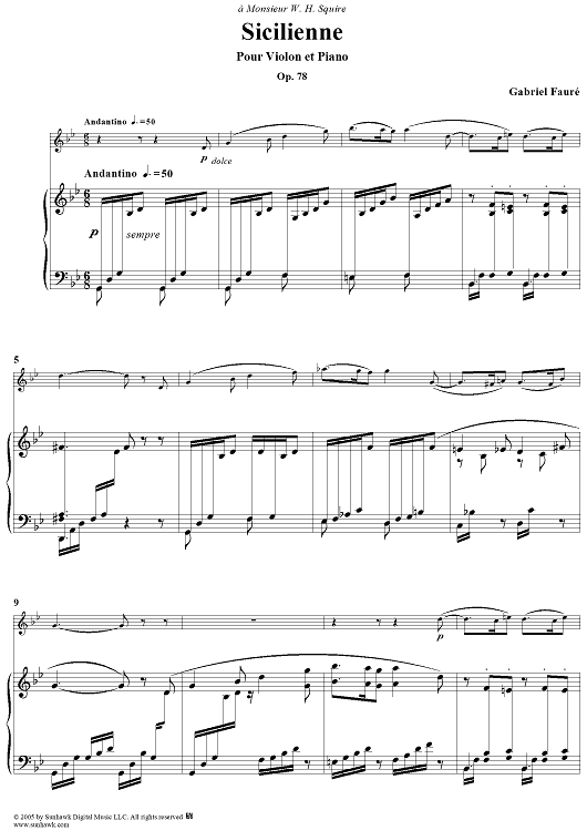 Digital Sheet Music for Sicilienne - Piano Score by Gabriel Fauré scored for Violin/Piano; id:311266