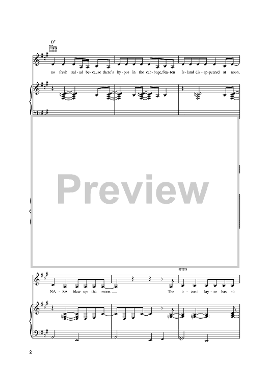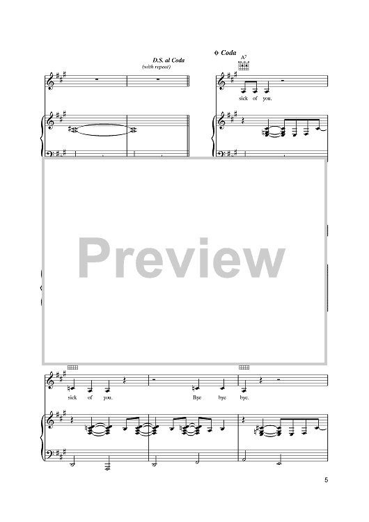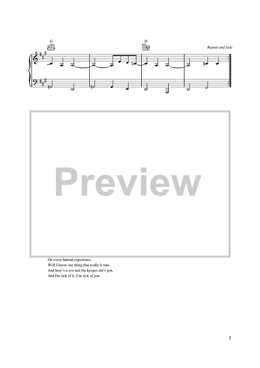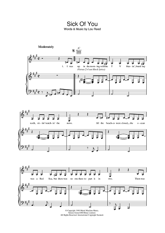 Digital Sheet Music for Sick Of You by Lou Reed scored for Piano/Vocal/Chords; id:402219