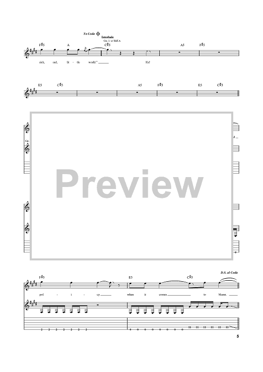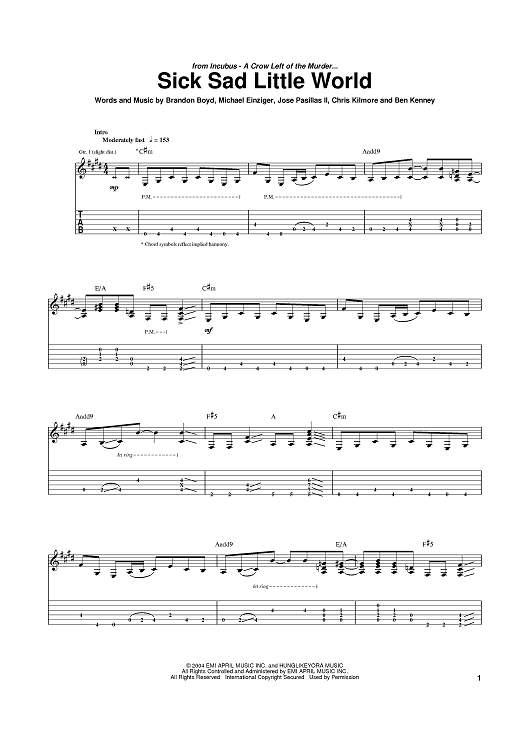 Digital Sheet Music for Sick Sad Little World by Brandon Boyd, Mike Einziger, Incubus, José Antonio Pasillas II scored for Guitar Tab; id:374104