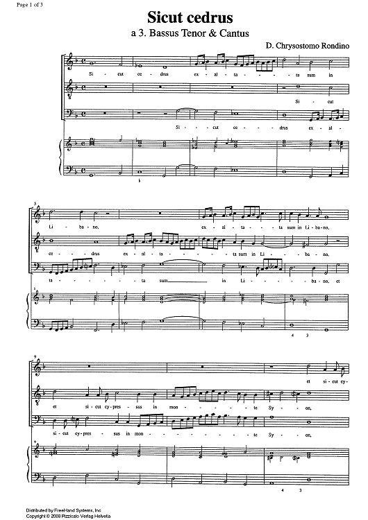 Digital Sheet Music for Sicut cedrus by , Crisostomo Rondini scored for Soprano/Tenor/Bass/Continuo; id:351046