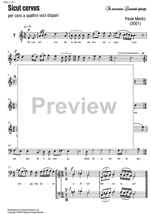 Digital Sheet Music for Sicut cervus by Pavle Merkù scored for SATB Choir; id:351275