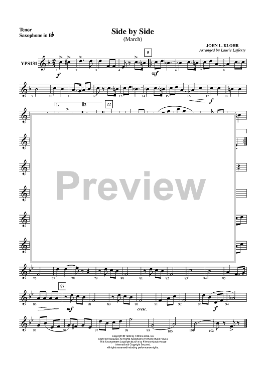 Digital Sheet Music for Side by Side (March) - Tenor Sax by John N. Klohr, Laurie Lafferty scored for Concert Band; id:436518