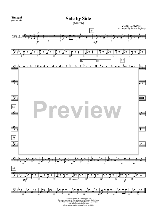 Digital Sheet Music for Side by Side (March) - Timpani by John N. Klohr, Laurie Lafferty scored for Concert Band; id:436529