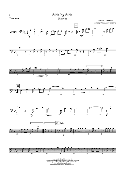 Digital Sheet Music for Side by Side (March) - Trombone by John N. Klohr, Laurie Lafferty scored for Concert Band; id:436524