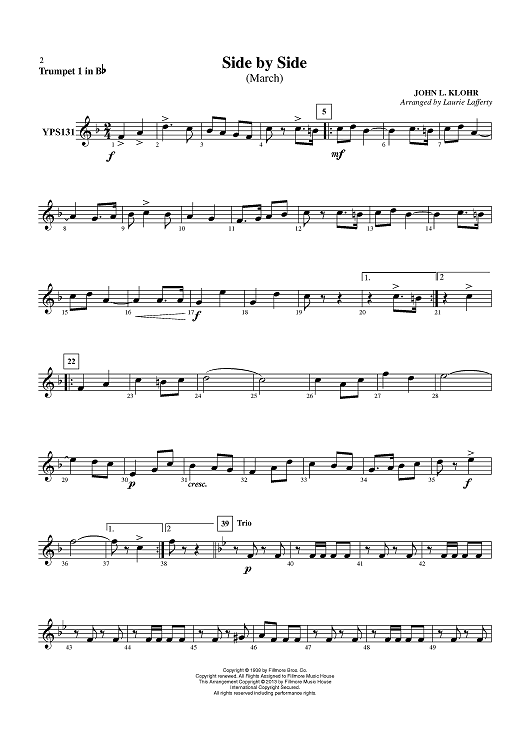 Digital Sheet Music for Side by Side (March) - Trumpet 1 in Bb by John N. Klohr, Laurie Lafferty scored for Concert Band; id:436520
