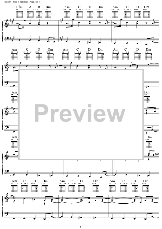 Digital Sheet Music for Side o' the Road by John Fogerty, Creedence Clearwater Revival scored for Piano/Vocal/Chords; id:269494