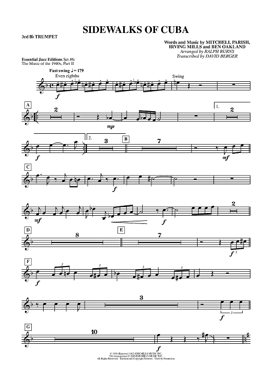 "Sidewalks of Cuba - B-flat Trumpet 3" Sheet Music by Mitchell Parish