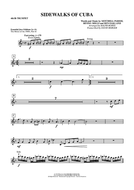 "Sidewalks of Cuba - B-flat Trumpet 4" Sheet Music by Mitchell Parish