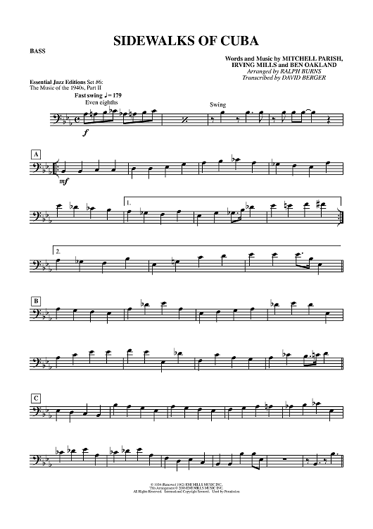 Digital Sheet Music for Sidewalks of Cuba - Bass by Mitchell Parish, Irving Mills, Ben Oakland, Ralph Burns scored for Jazz Ensemble; id:360436