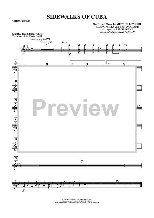 Digital Sheet Music for Sidewalks of Cuba - Vibraphone by Mitchell Parish, Irving Mills, Ben Oakland, Ralph Burns scored for Jazz Ensemble; id:360433
