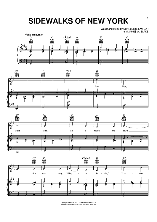 Digital Sheet Music for Sidewalks Of New York by Duke Ellington, James W. Blake, Charles B. Lawlor scored for Piano/Vocal/Chords; id:368286