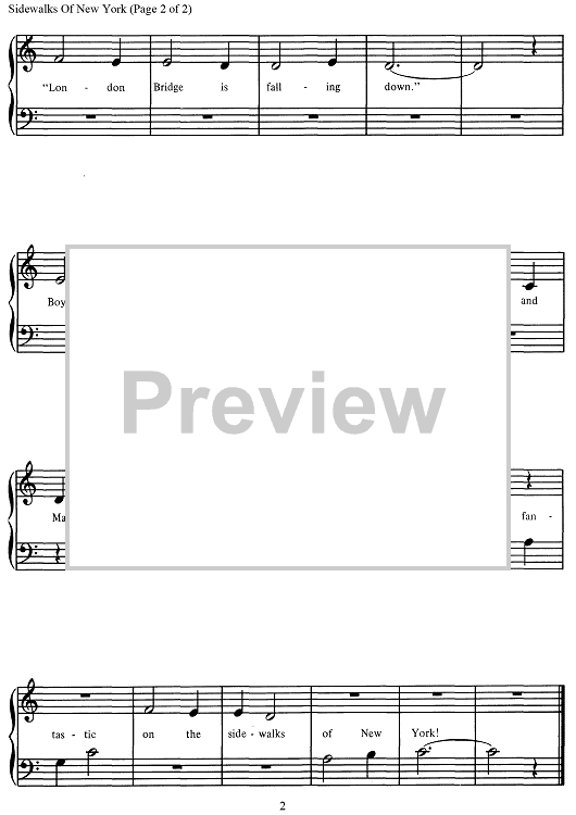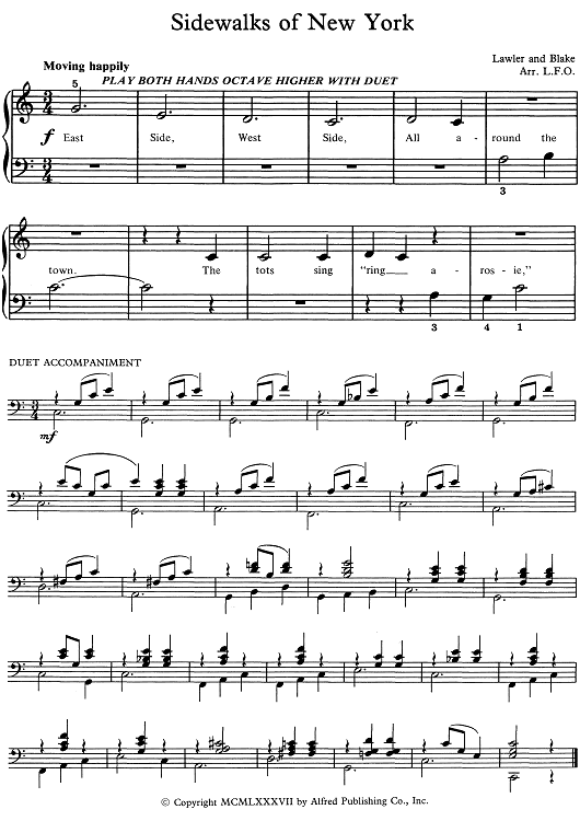 Digital Sheet Music for Sidewalks of New York by Lynn Freeman Olson scored for Five Finger Piano; id:511000