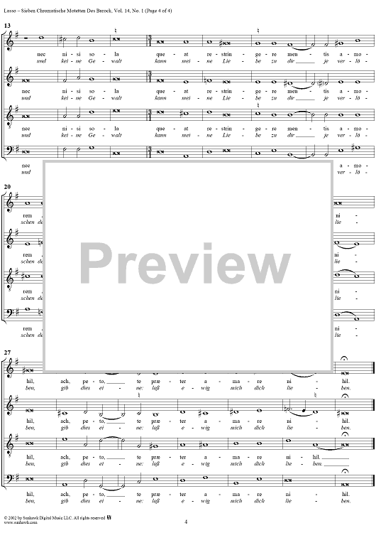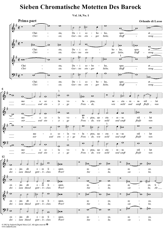 Digital Sheet Music for Sieben Chromatische Motetten Des Barock, vol.14, I by Orlando de Lassus scored for Four-part Mixed Chorus; id:251040