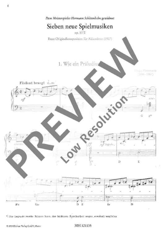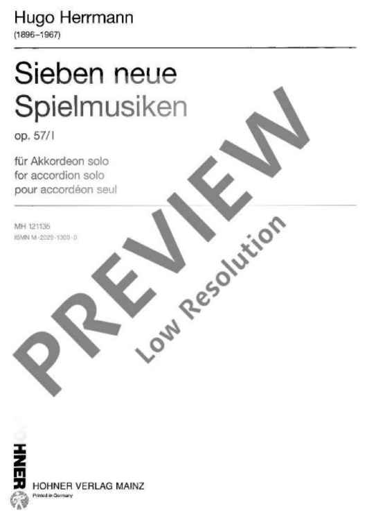 Digital Sheet Music for Sieben neue Spielmusiken by Hugo Herrmann scored for Accordion (m Ii); id:475950