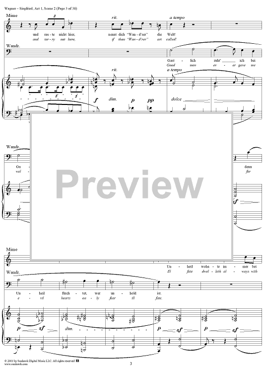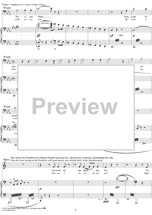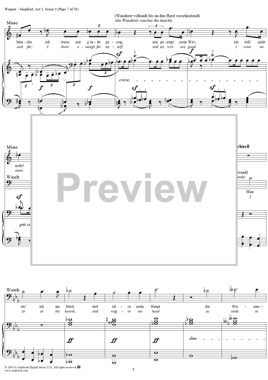Digital Sheet Music for Siegfried, WWV86C, Act 1, Scene 2, Mime, The Wanderer by Richard Wagner scored for Vocal Score; id:264503