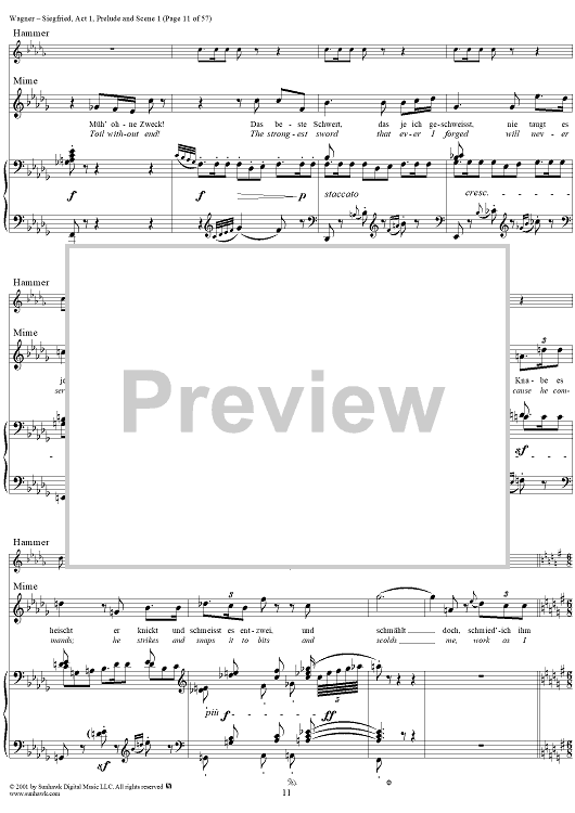 Digital Sheet Music for Siegfried, WWV86C, WWV86C, First Act, Prelude and Scene I, Mime, Siegfried by Richard Wagner scored for Vocal Score; id:264766