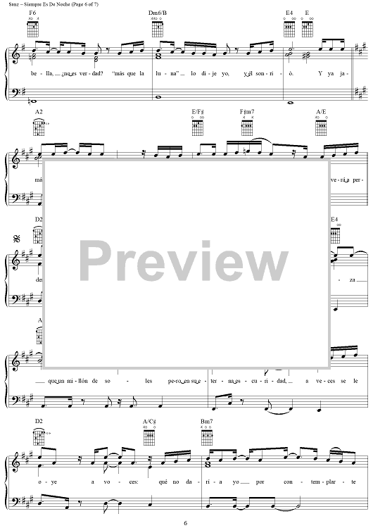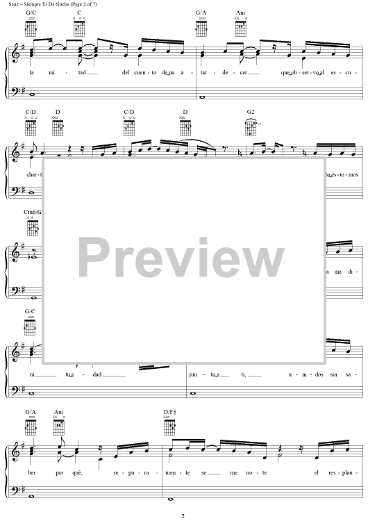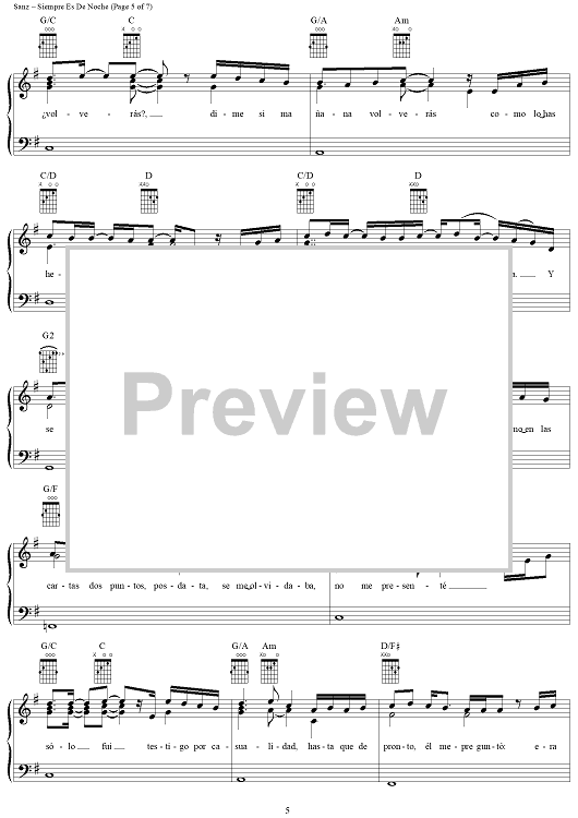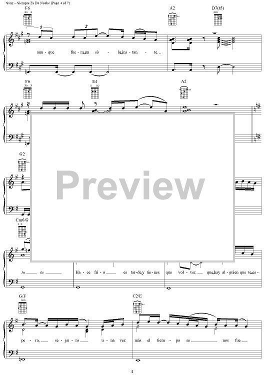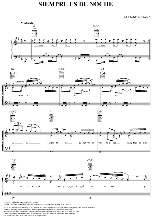 Digital Sheet Music for Siempre Es De Noche by Alejandro Sanz scored for Piano/Vocal/Chords; id:290078