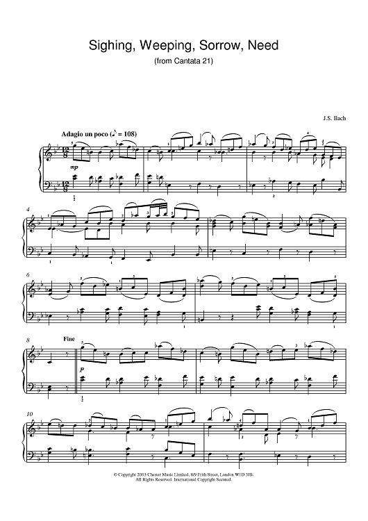 Digital Sheet Music for Sighing, Weeping, Sorrow, Need (from Cantata 21) by Johann Sebastian Bach scored for Piano; id:378880