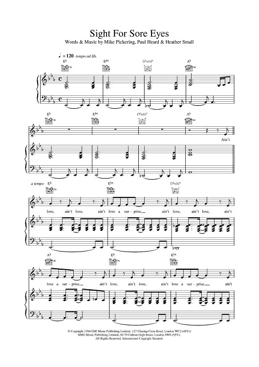 Digital Sheet Music for Sight For Sore Eyes by Paul Heard, M People, Mike Pickering scored for Piano/Vocal/Chords; id:379949