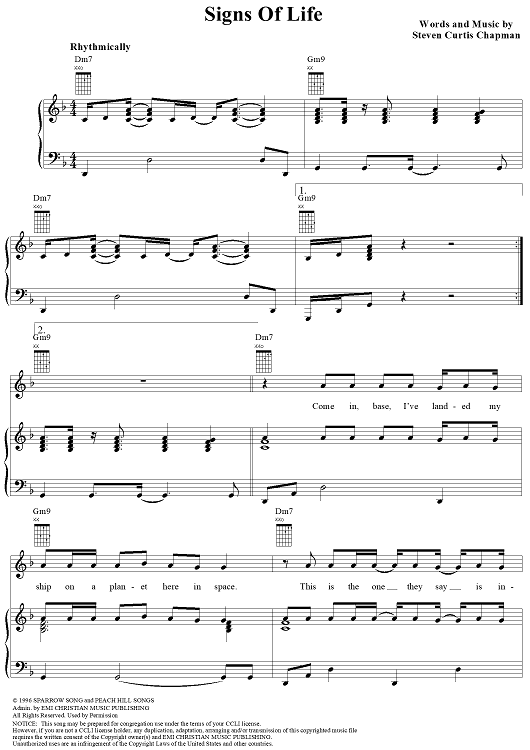 Digital Sheet Music for Signs of Life by Steven Curtis Chapman scored for Piano/Vocal/Chords; id:119385