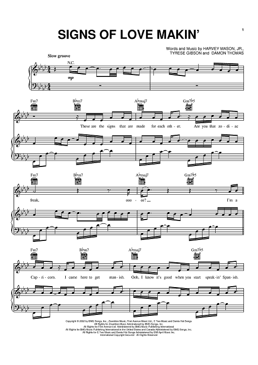 Digital Sheet Music for Signs Of Love Makin' by Tyrese, Tyrese Gibson, Damon Thomas, Harvey Mason, Jr. scored for Piano/Vocal/Chords; id:372369
