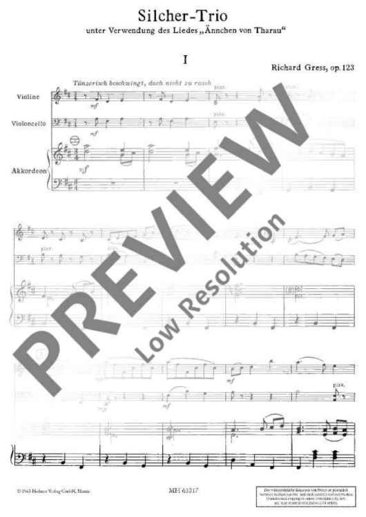 Digital Sheet Music for Silcher-Trio - Score and Parts by Richard Gress scored for Violin, Cello And Accordion; id:475924