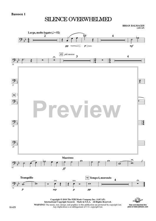 Digital Sheet Music for Silence Overwhelmed - Bassoon 1 by Brian Balmages scored for Symphonic Band; id:415583
