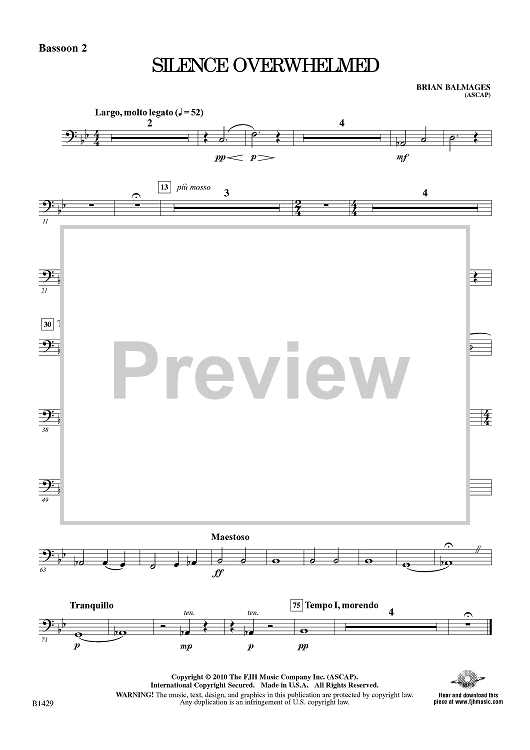 Digital Sheet Music for Silence Overwhelmed - Bassoon 2 by Brian Balmages scored for Symphonic Band; id:415584