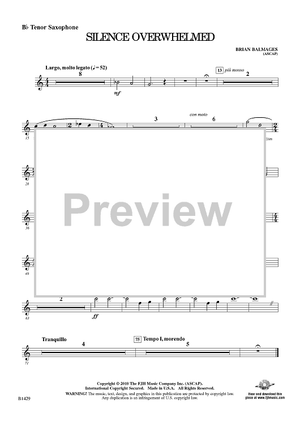 "Silence Overwhelmed - Bb Tenor Sax" Sheet Music by Brian Balmages
