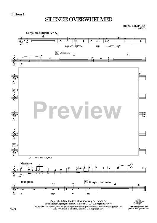 Digital Sheet Music for Silence Overwhelmed - F Horn 1 by Brian Balmages scored for Symphonic Band; id:415596