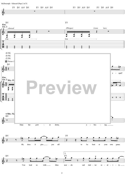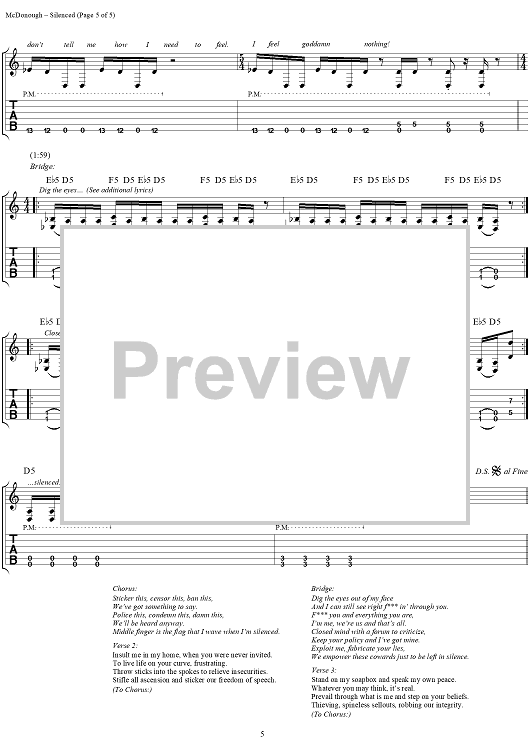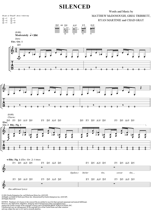 Digital Sheet Music for Silenced by Matthew McDonough, Gurrg, Ry-Know, Chad Gray, Mudvayne scored for Guitar Tab/Vocal; id:297585