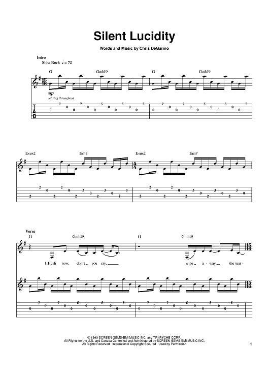 Digital Sheet Music for Silent Lucidity by Chris DeGarmo, Queensrÿche scored for Guitar Tab; id:374343