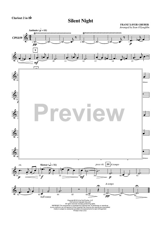 Digital Sheet Music for Silent Night - Clarinet 2 in Bb by Franz Xaver Gruber, Sean O'Loughlin scored for Concert Band; id:451146