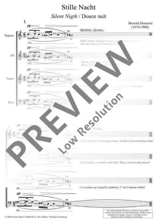 "Silent Night, Holy Night - Score" Sheet Music by Bertold Hummel