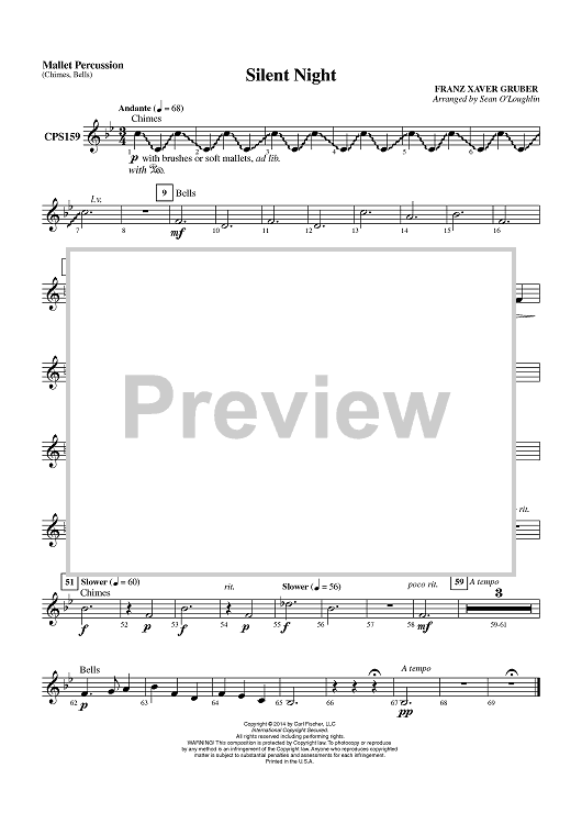 Digital Sheet Music for Silent Night - Mallet Percussion by Franz Xaver Gruber, Sean O'Loughlin scored for Concert Band; id:451164