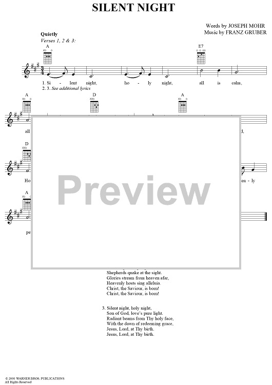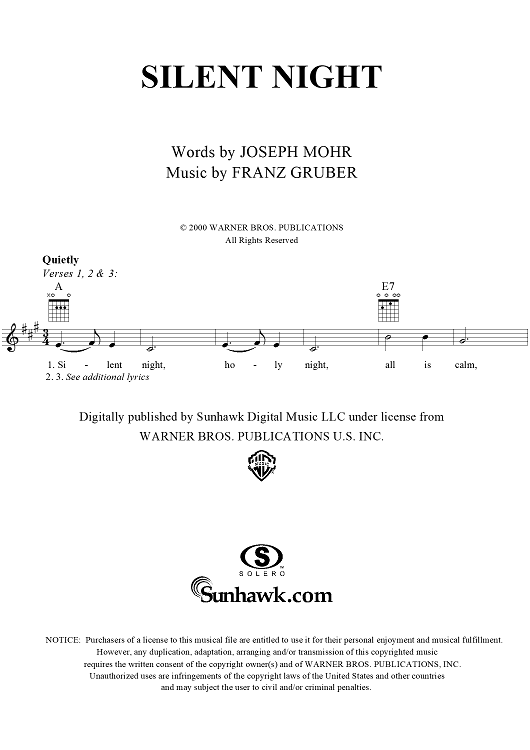 Digital Sheet Music for Silent Night by Franz Xaver Gruber, Josef Mohr scored for Lead Sheet; id:292652