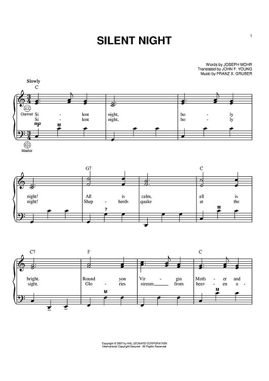 Digital Sheet Music for Silent Night by Franz Xaver Gruber, Josef Mohr, John F. Young scored for Accordion; id:397942