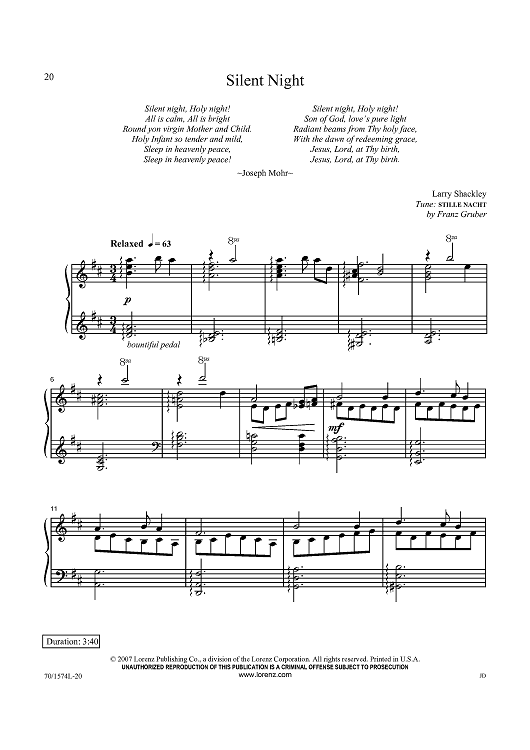 Digital Sheet Music for Silent Night by Franz Grothe, Larry Shackley scored for Piano Solo; id:434544
