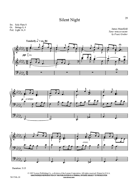 Digital Sheet Music for Silent Night by Franz Grothe, James Mansfield scored for Organ Solo; id:436716