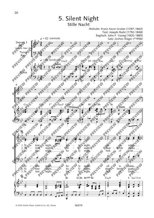 Digital Sheet Music for Silent Night by Jochen Rieger, Franz Gruber scored for Mixed Choir (s(s)atb) And Piano; id:485858