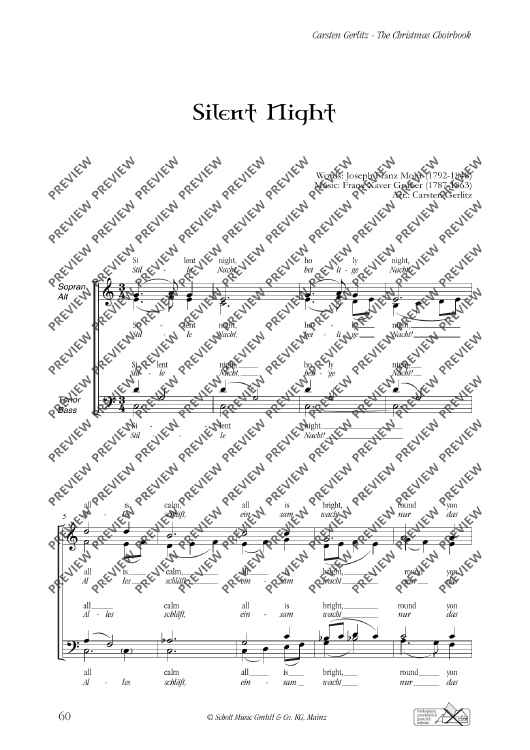 Digital Sheet Music for Silent Night by Carsten Gerlitz, Joseph Mohr scored for Mixed Choir; id:493261