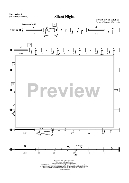 Digital Sheet Music for Silent Night - Percussion 1 by Franz Xaver Gruber, Sean O'Loughlin scored for Concert Band; id:451166